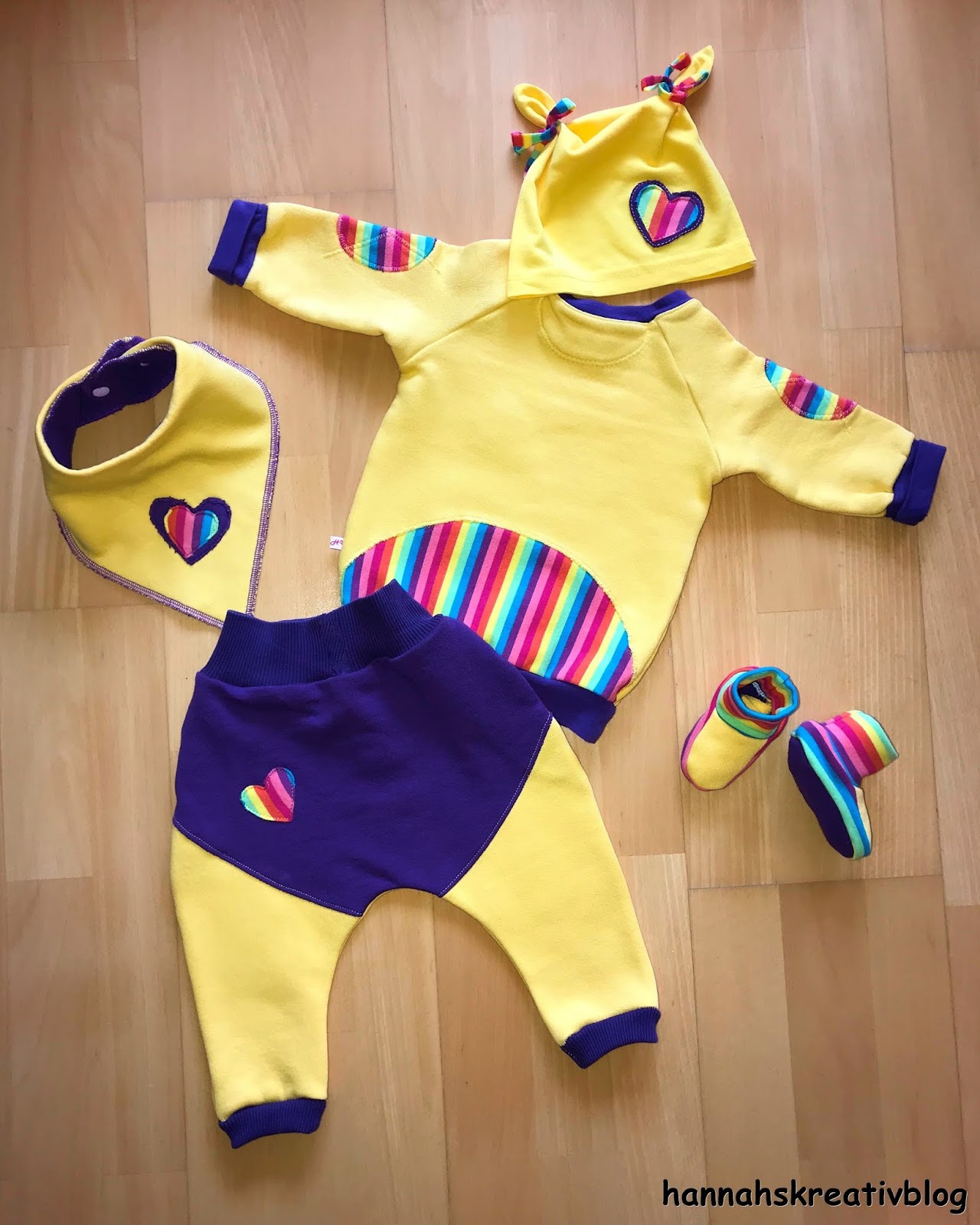Zu diesem von mir genähtem gelben Herzpullover, den nun meine Jüngste von der Nichte geerbt hat, habe ich ein Herbstoufit genäht.